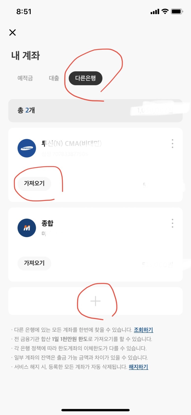 정보동의하고 내 명의 다른은행 모든 계좌와 잔고가 좌르르