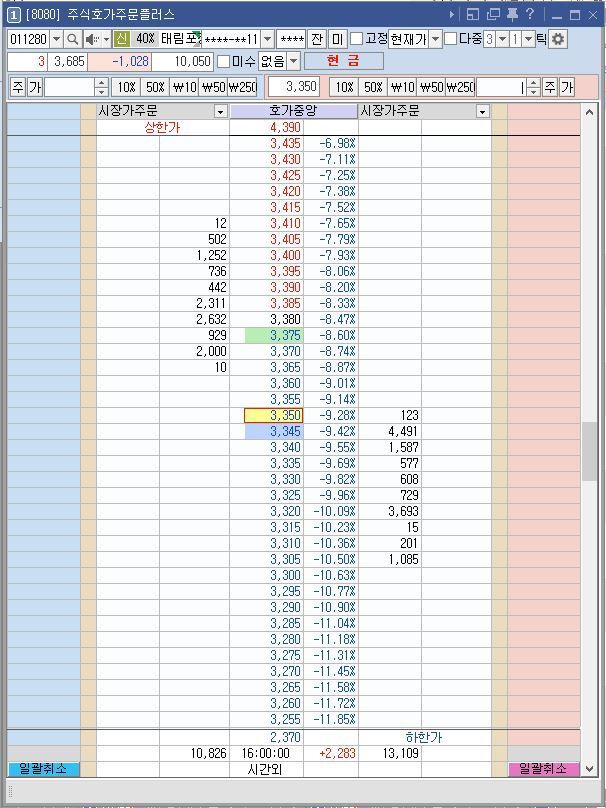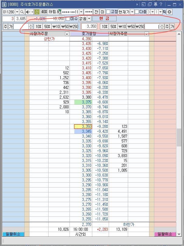 수량이나 금액 입력하고 원하는 쪽에 더블클릭하면 바로 주문 들어가집니다.